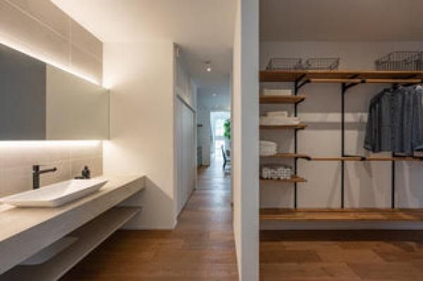 高級感とスタイリッシュな設備デザイン性と機能性を極めた設備が、洗練された高級感を演出するモデルハウス。 幅広の挽板床材がもたらす重厚感、、柔らかな間接照明が、居住空間全体を上質な雰囲気に包み込みます。