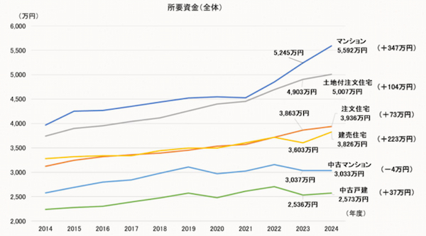 とはいえ、どれくらいの予算が平均なのかわからない方もいらっしゃることでしょう。住宅金融支援機構によると、注文住宅の場合の所要資金は全国平均で約4,000万円〜5,000万円ほどになります。