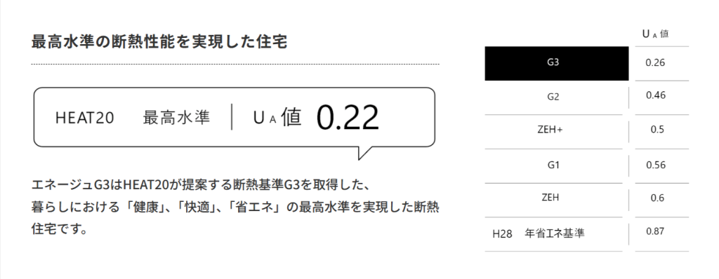 HEAT20のG3基準はUA値0.2以下という非常に厳しい水準で、健康・快適・省エネのすべてにおいて最高水準を実現しています。