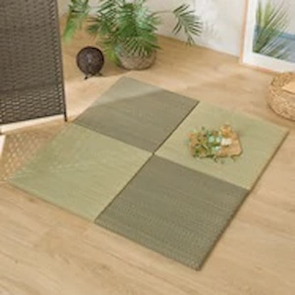 置き畳とは好きな場所に置くことができる畳のことです。ユニット畳、システム畳と呼ばれることもあります。半畳タイプのモノが多く、置き畳をつなげることで好きな範囲を畳スペースに変更できます。裏側は滑り止めが付いているモノが多いため、フローリングなどの凸凹していない場所であればどこでも設置可能です。