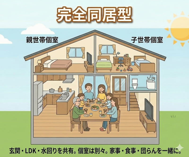 完全同居型:家事・食事・団らんを一緒に過ごす