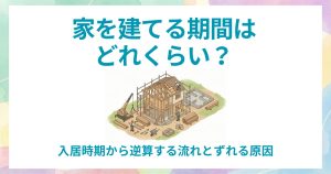 この記事では、家を建てる期間の全体像を工程ごとに整理したうえで、期間が長引く主な原因や、入居時期から逆算して進める考え方を分かりやすく解説します。
